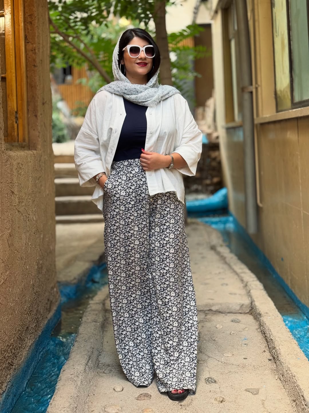 ست شومیز و شلوار زنانه (شومیز پشت گره و شلوار واید لگ)