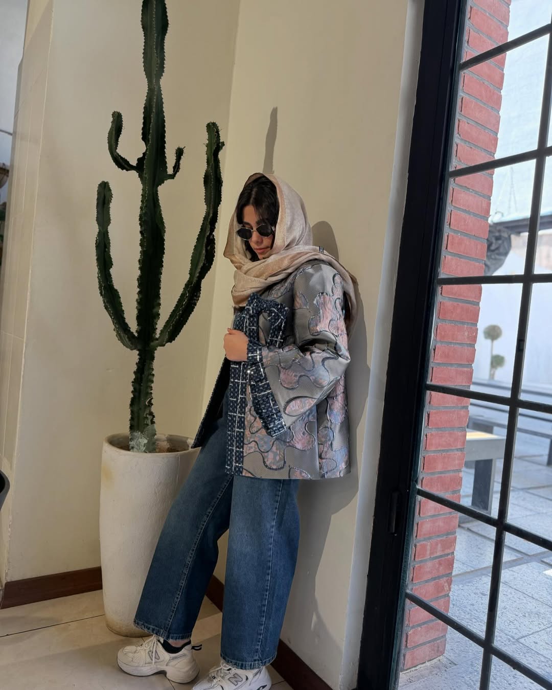 کت ژاکارد زنانه گرم بالا ترکیب شده با جین کار مزونی